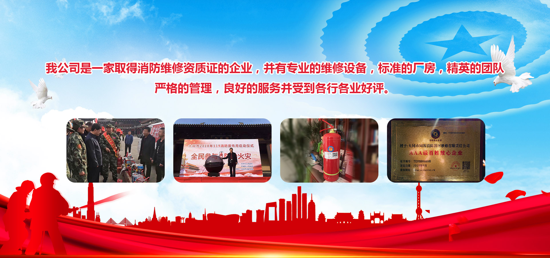 大同市同渾消防器材維修有限責任公司,位于大同市同泉路389號,始建于2000年,是公安部消防局定點銷售和維修的企業,歷經多年的創建、發展和拼搏,現有多家消防器材廠商供應我公司,并有現代化維修設備,標準的廠房,嚴格的管理,優良的設備,良好的服務并受到各行各業的好評。總經理劉國玉嚴格管理,嚴格要求,精益求精,認真負責,帶領團隊熱烈歡迎各界朋友顧客光臨。